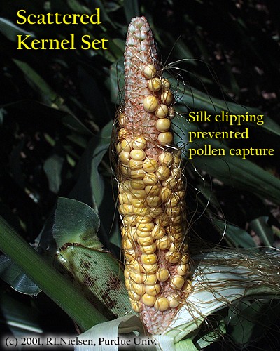 clipping extending into the husk leaf tissue. Note the damaged silk ends that
