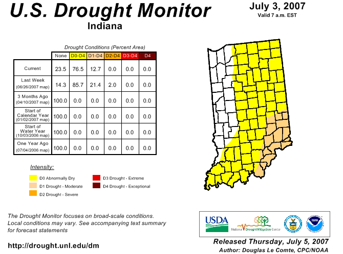 Fig. 1. Estimates of drought conditions throughout Indiana as of 3 July