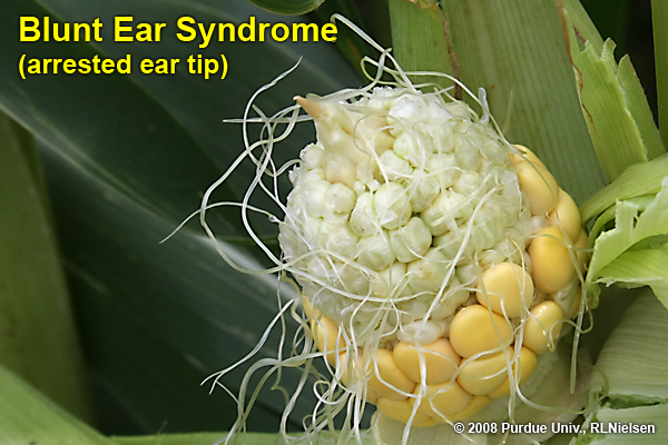 Nielsen, R.L. (Bob). 2003. Blunt Ear Syndrome in Corn. Corny News Network, Purdue Univ. [Online] http://www.kingcorn.org/news/articles.03/BeerCanEars-0812.html. [URL accessed 8/25/09].