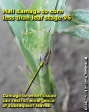 Extensive leaf shredding occurred on all plants. A small percentage of plants were nearly completely defoliated, i.e., nearly all above-ground leaf material removed. The plants illustrated below are examples of severe defoliation that will nonetheless likely result in surviving plants with little to no yield loss.