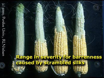 Given these opinions on temperature factors that may contribute to the problem, one could speculate (some would say fearmonger) that recent unusually cool nights throughout the central and northern parts of Indiana, plus the current forecast for more of the same, may lead to an increased occurrence of scrambled silks this year.