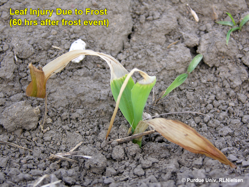 When significant frost develops on young corn plants, it is tempting to jump to the logical conclusion that significant plant mortality will soon follow. However, frost by itself is not a guaranteed "kiss of death" for young corn plants. What is more important is whether the temperature that accompanied the frost event was lethal or not. Most agronomists agree that "lethally cold" temperatures for young corn are those that dip to 28F or lower for 1 to 2 hours.