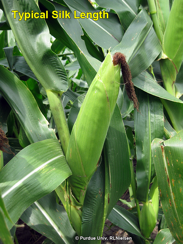 Relatively cool temperatures, cloudy weather, and ample soil moisture promote sustained silk elongation. Coupled with hybrids that may silk one or more days prior to pollen shed from the tassel, silk lengths can become quite impressive.