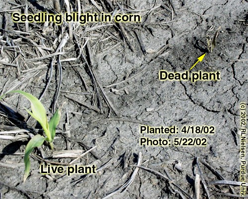 Two of the major interacting factors that influence the extent to which early season stress affects stand establishment are soil temperature and moisture content. Early-planted corn this year (what little of it there was) endured 4 to 5 weeks of sustained cool soils after planting that greatly slowed early corn development of corn seedlings. Much of that time, the soils were also saturated, if not ponded, which further stunted corn development. Whenever early nodal root development is significantly delayed, other stress factors (especially soil insects and diseases) simply have more time in which to damage the seed and mesocotyl and, ultimately, injure or kill young seedlings.