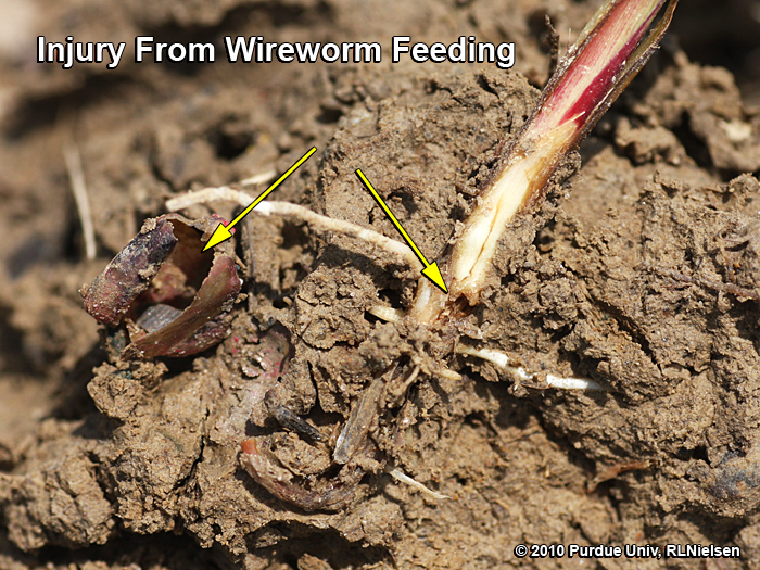 - Damage to kernels or seedlings from a number of pests including wireworms, slugs, nematodes, seedling blight, and anthracnose.