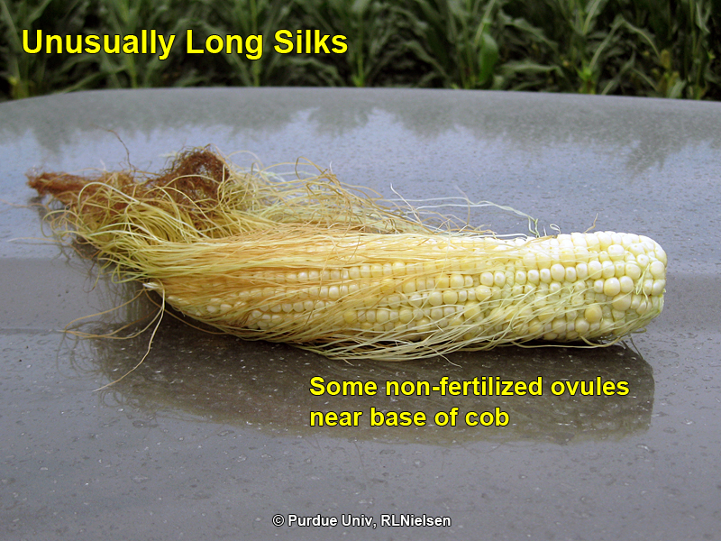 While unusually long silks are, well, unusual, don't get overly pessimistic about the prospects of poor kernel set as a consequence. Time spent now walking fields during the early stages of grain fill may help provide an overview of the extent of the problem if any.