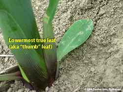 Useful Tip: Even though one or more lower leaves may have "disappeared" due to injury or natural senescence, their absence does not mean they should be forgotten or ignored. In other words, a plant that is assessed at being at the V12 stage as a result of the previously described stalk splitting steps may only have 8 leaves with visible leaf collars if 4 lower ones have already withered away. Do not be misled into thinking the plant is only at the V8 stage.