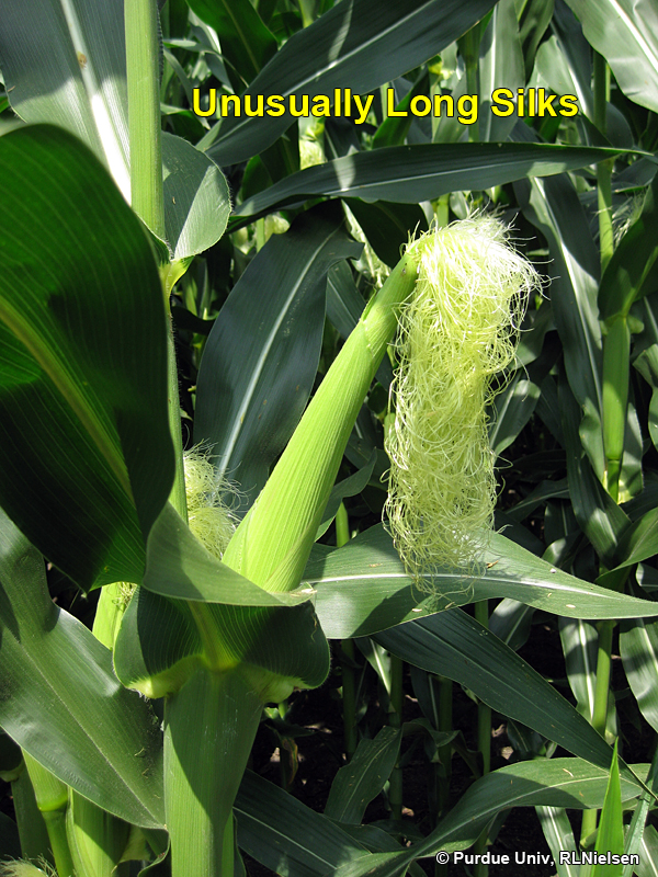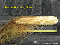 While unusually long silks are, well, unusual, don't get overly pessimistic about the prospects of poor kernel set as a consequence. Time spent now walking fields during the early stages of grain fill may help provide an overview of the extent of the problem if any.