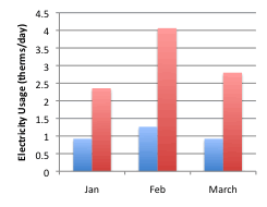 - Total home energy use (electric and gas) was less in both winter and summer 2008;