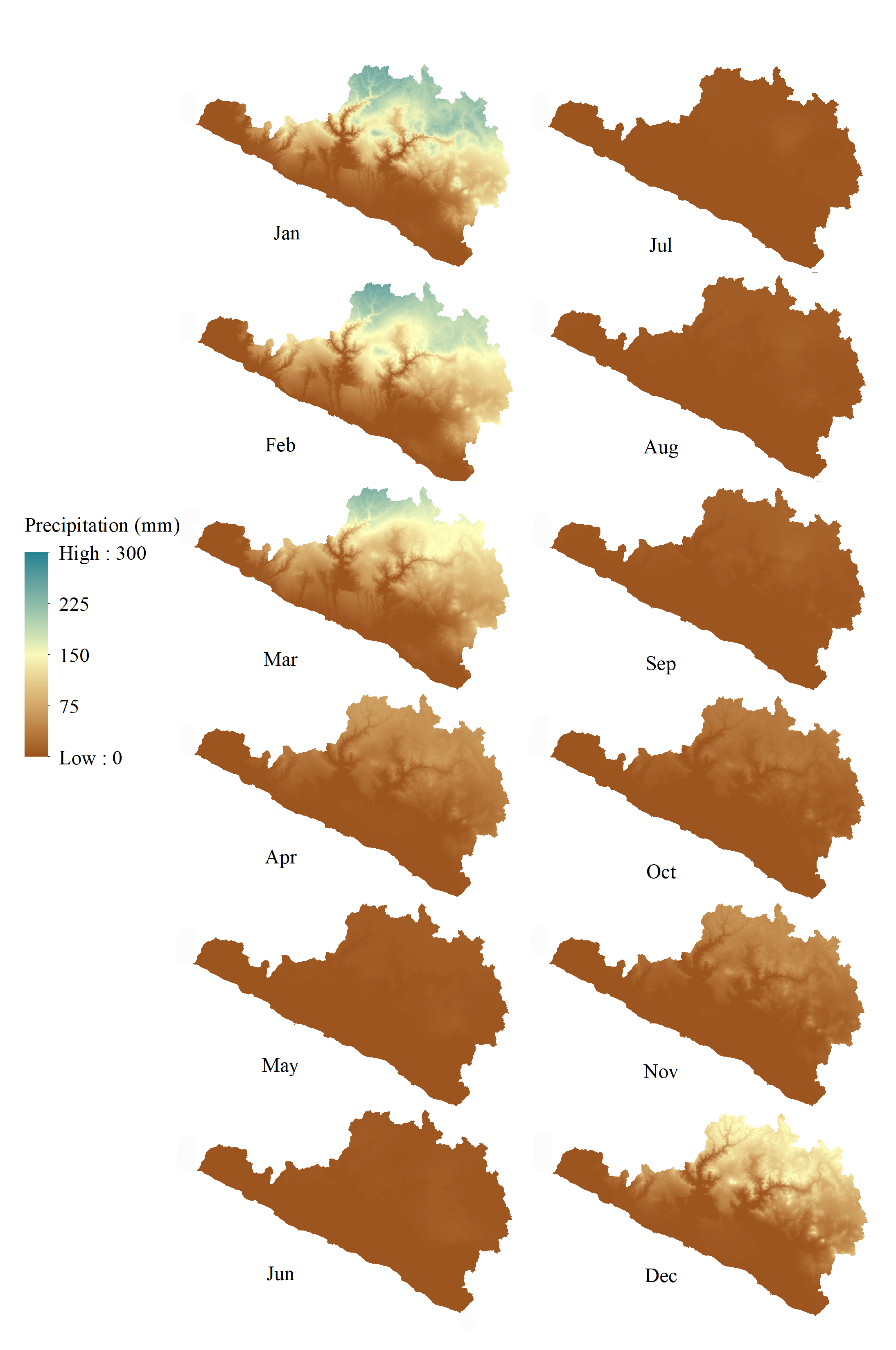 Climate is a powerful driver of agricultural and natural systems, and spatial climate data sets in digital form are currently in great demand. This is especially true in the Arequipa Region of Peru, a region with low seasonal precipitation, significant topographic variability, and high demand for water use in highly managed water systems. To better understand meteorological and climate changes in Arequipa, the SWM team created a dataset that contains 30 years of annual, monthly and daily gridded climate maps of precipitation and maximum and minimum air temperature from January 1, 1988, to December 31, 2017. It was created using weather station data from the Servicio Nacional de Meteorología e Hidrología del Perú (SENAMHI) and the National Ocean and Atmospheric Administration’s (NOAA) Global Summary of the Day (GSOD). Topography data, used as covariates for spatial interpolation, came from the ALOS World 3D DEM. Weather data went through extensive preprocessing for removal of implausible values, data gap filling, and inhomogeneity detection. Maps were created using a Regression Thin-Plate Splines (RTPS) method that made use of Polynomial and Potential Regression Models specifically developed for the region. Please see our Publications page for more information about articles related to this work. There are data publications both for climate normals and yearly, monthly, and daily maps.