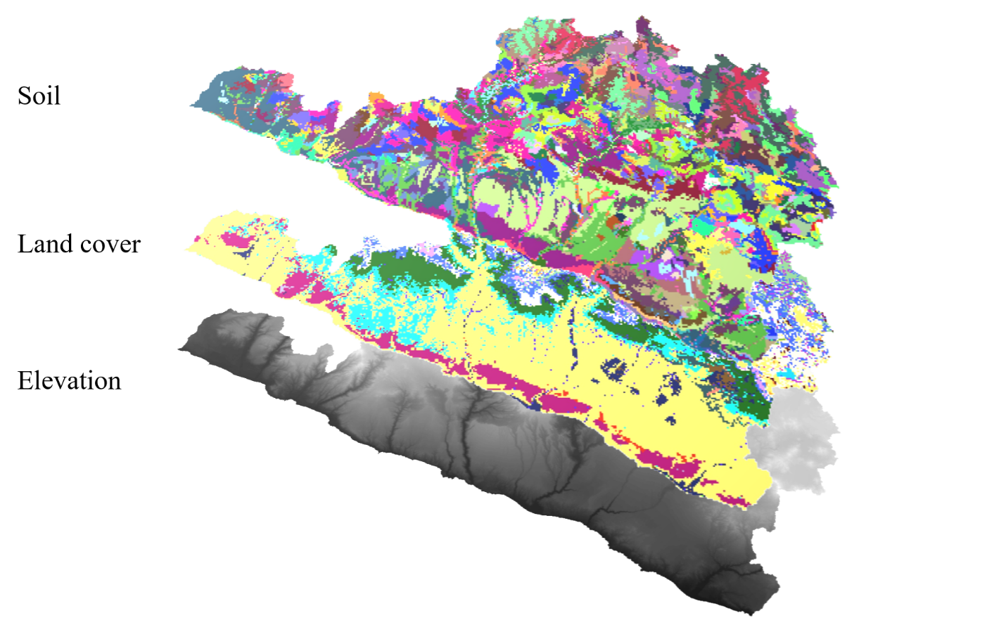 Figure 2. Elevation, land cover, and soil maps of Arequipa department that were used for SWAT model development