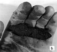 | Do not stick together enough to form a cast, (a) Cannot be formed into a ribbon, and are very grainy in appearance. They are not sticky. | Form a good cast (b) and a weak ribbon (c). Surface has a grainy appearance. They are not sticky. | Form a good cast and a moderately weak ribbon (d) Medium-textured soils are slightly sticky. |